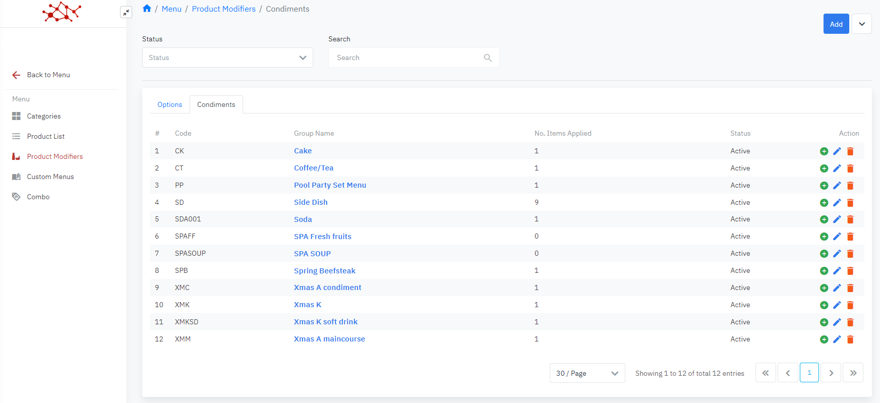 Log in – Food and Beverage - Menu - Product Modifiers - Condiments |