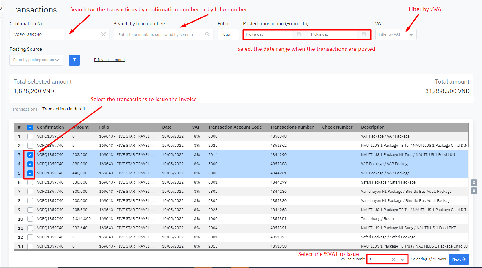 [Transactions] – List of transactions to invoice![]()