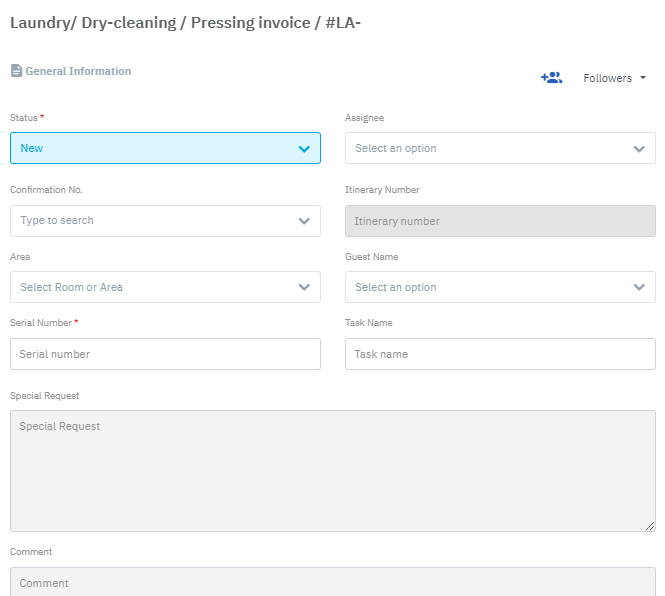 The screen allows you to create a new laundry request. |