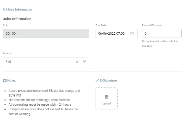 ![]() [Attachment]You can also attach photos of the laundry items when receiving and returning the items. ![]() [Job Information] - Details of the laundry job![]()