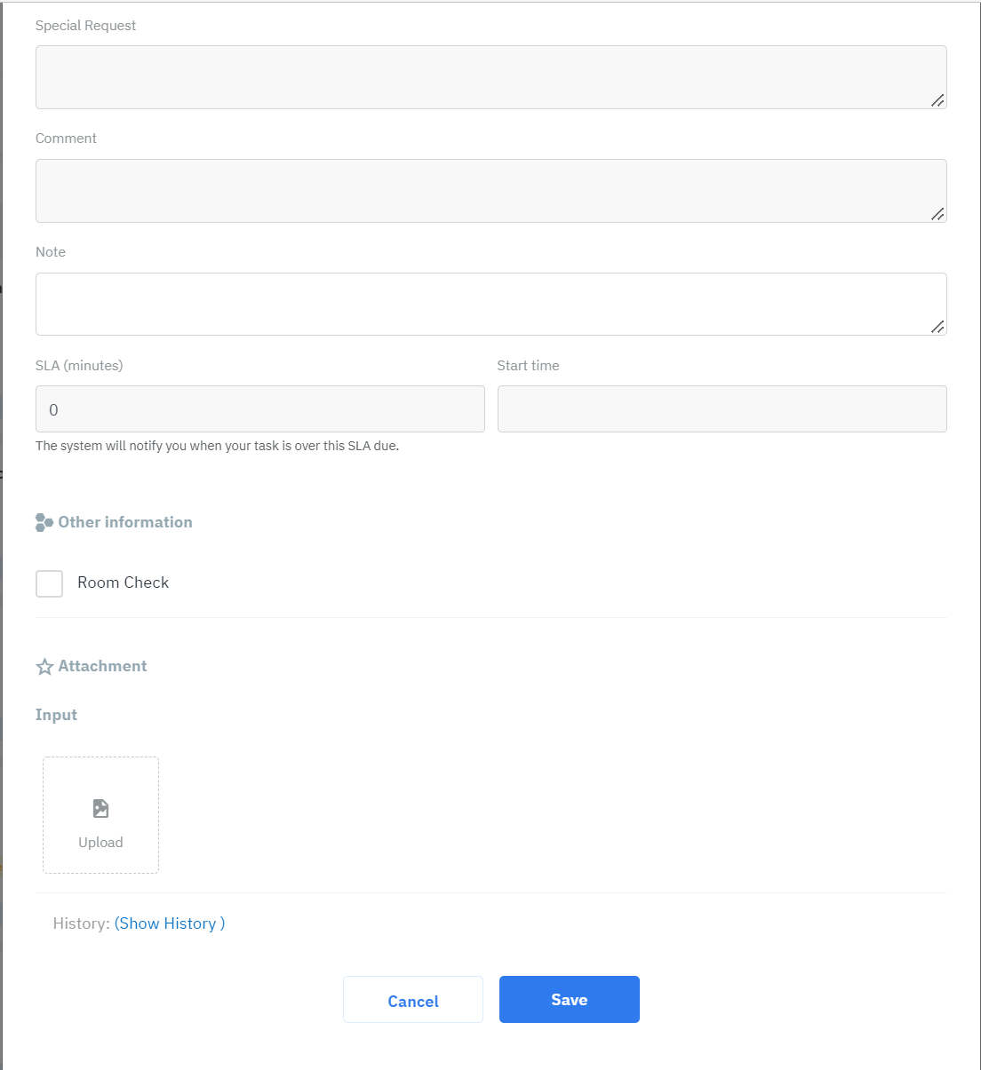 The screen allows you to create a new task for the Runner following the pre-configured template of HK department. Once the task is created, the system will send the push notification to the creator, supervisor, and assignee. The notification is sent to the web as well as mobile application if this user uses the Staff App application on their mobile phone. |