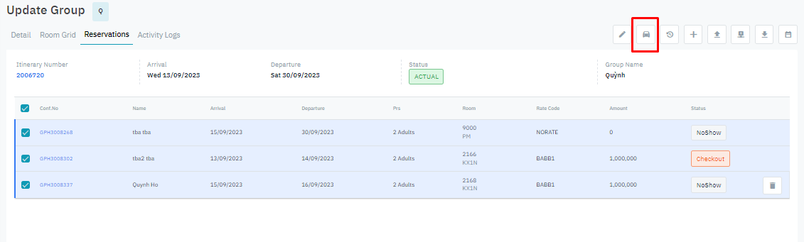 Creating a shuttle bus task for group booking only be done provided that the group has created a booking on the system. For bookings that need to create a shuttle task for guests with different times in the same room, users can re-select those rooms & update guest names separately for each different time respectively. When creating a shuttle task for guests in the group booking, the information about Group Name, Itinerary Number, Confirmation Number will be automatically filled in corresponding to the bookings the user has selected in the group's booking list & cannot be edited. Users who want to change that information need to choose again from the list of reservations in the group booking. |