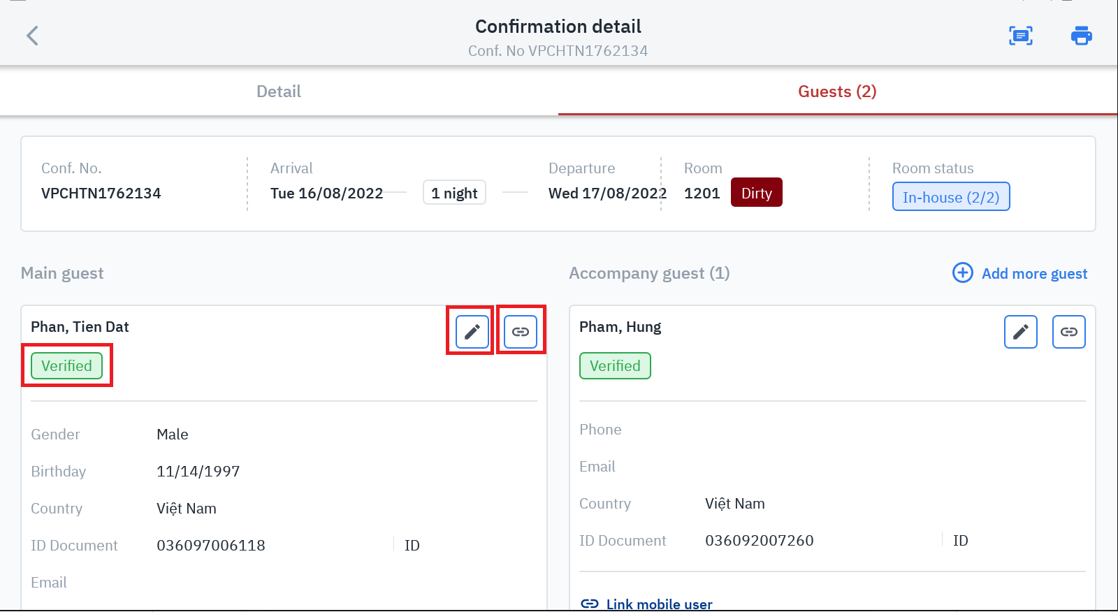 Can take and update multiple identity documents (ID card/citizen identity card..) for 1 room |