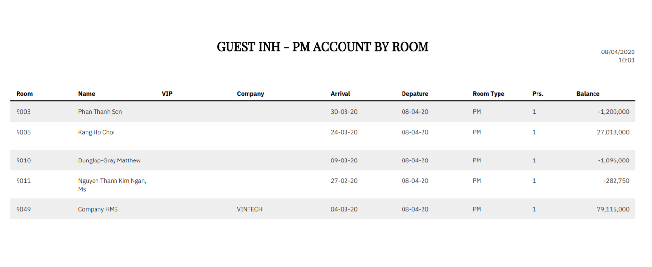 Guest INH PM Account By Room |