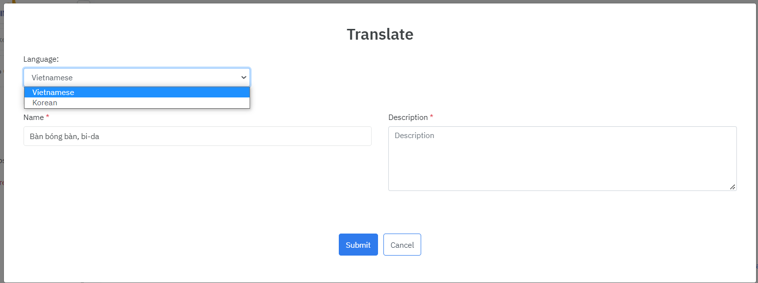 Select Submit to save the configuration. The system can support now 2 languages Korean and Vietnamese. ![]() |