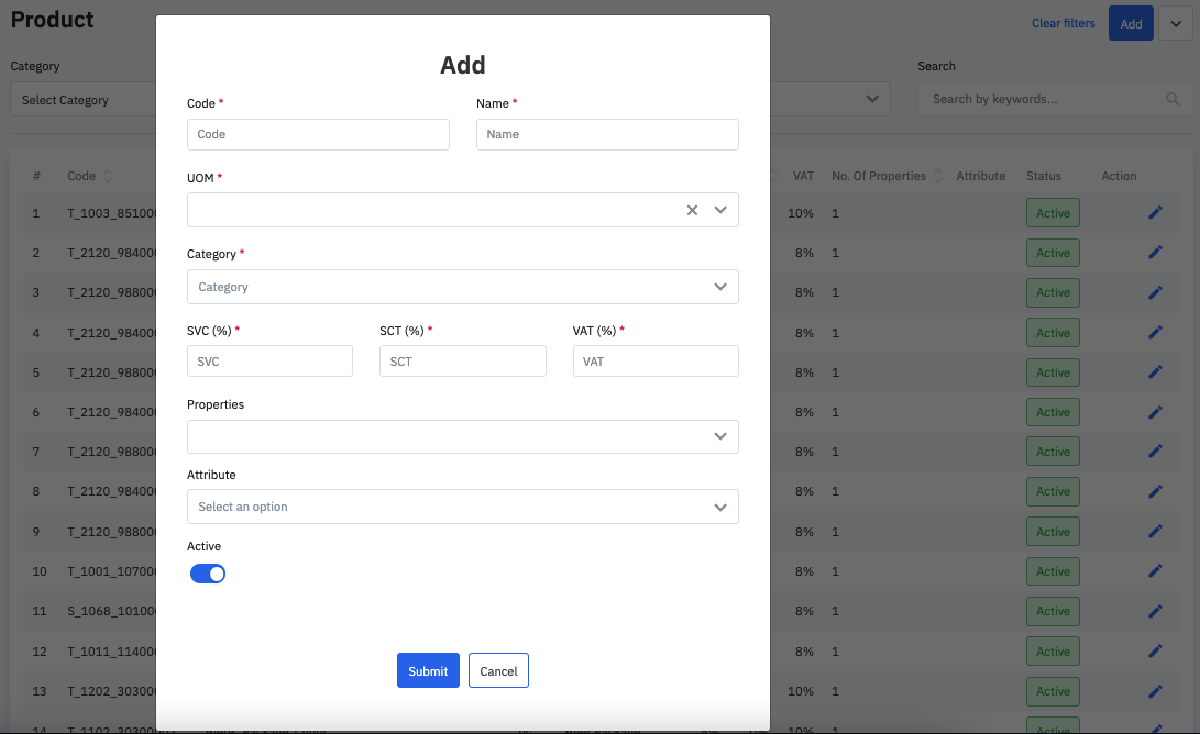 Log in – Admin Setting – Setup – Food and Beverage – Product |