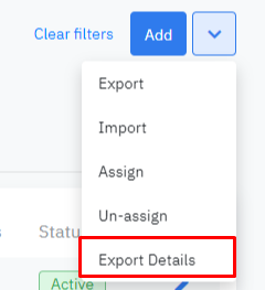 Export product list of properties Existing product listings of 1 or more properties can be exported by: Click the button near the Add button, select Export Details  Select 1 or properties that want to export the product list Include In-active: Export also products that are In-active at the property Click Export >>Click here to download to download the file