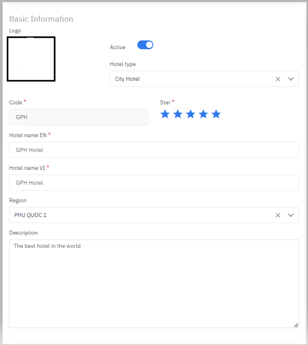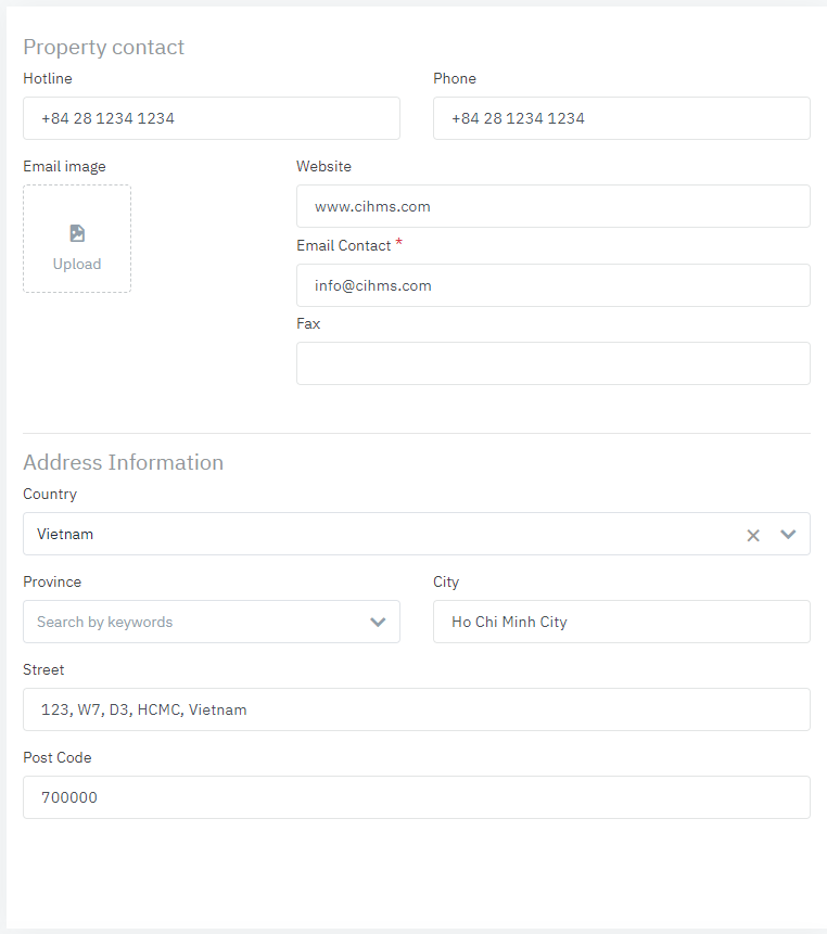The screen displays the general and detailed information of a property and allows you to update it. |