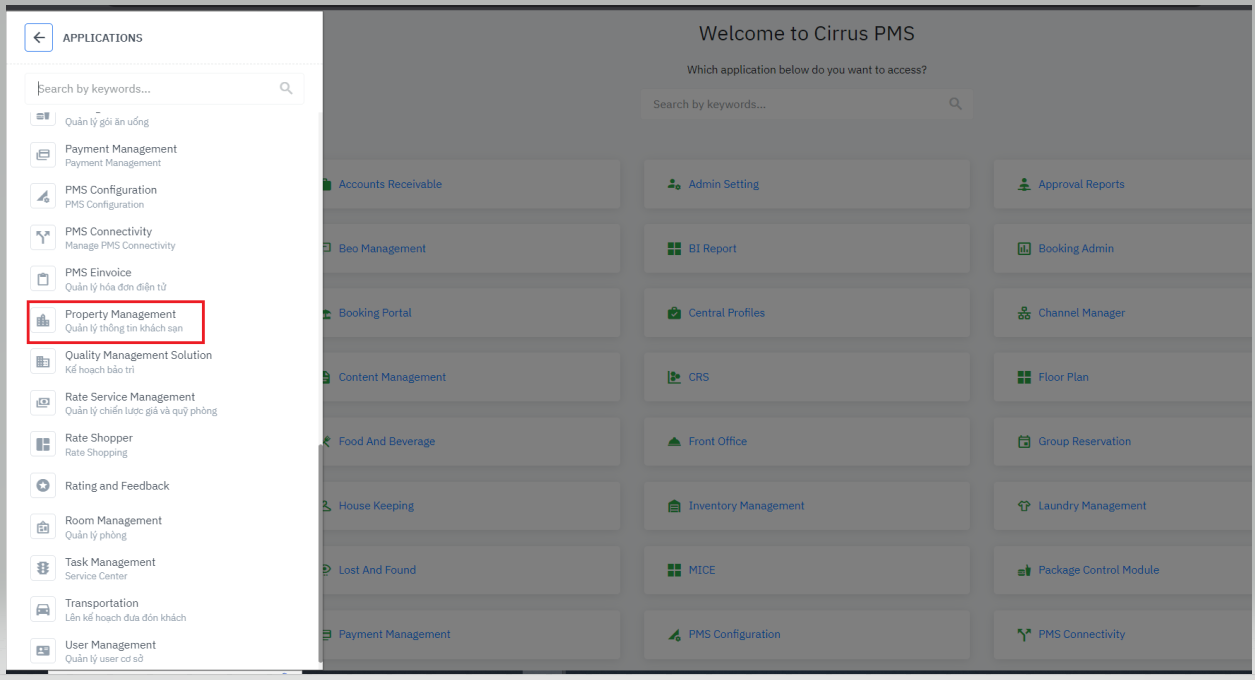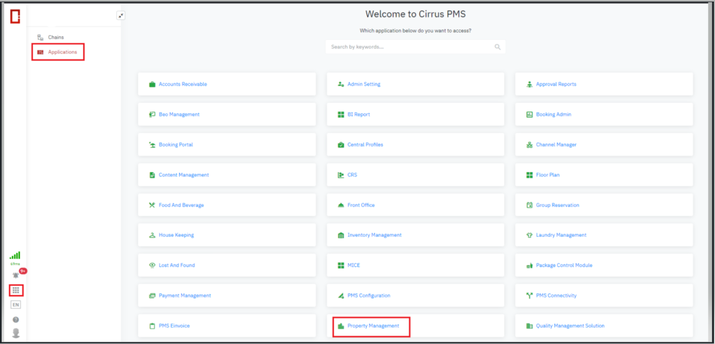 or select the application from the left menu