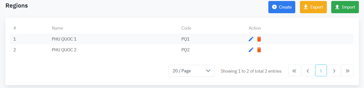 Log in >> Admin setting >> Setup >> Geography >> Regions |