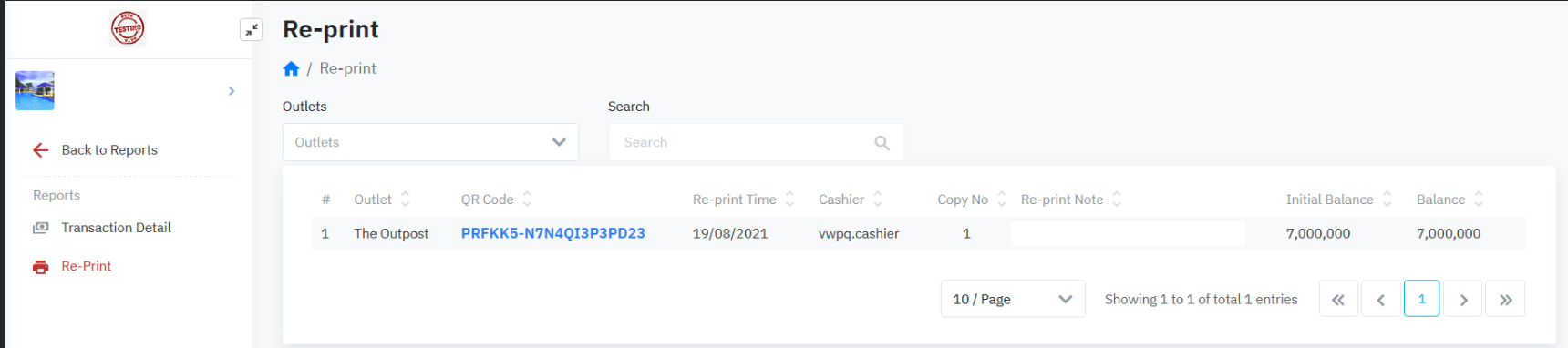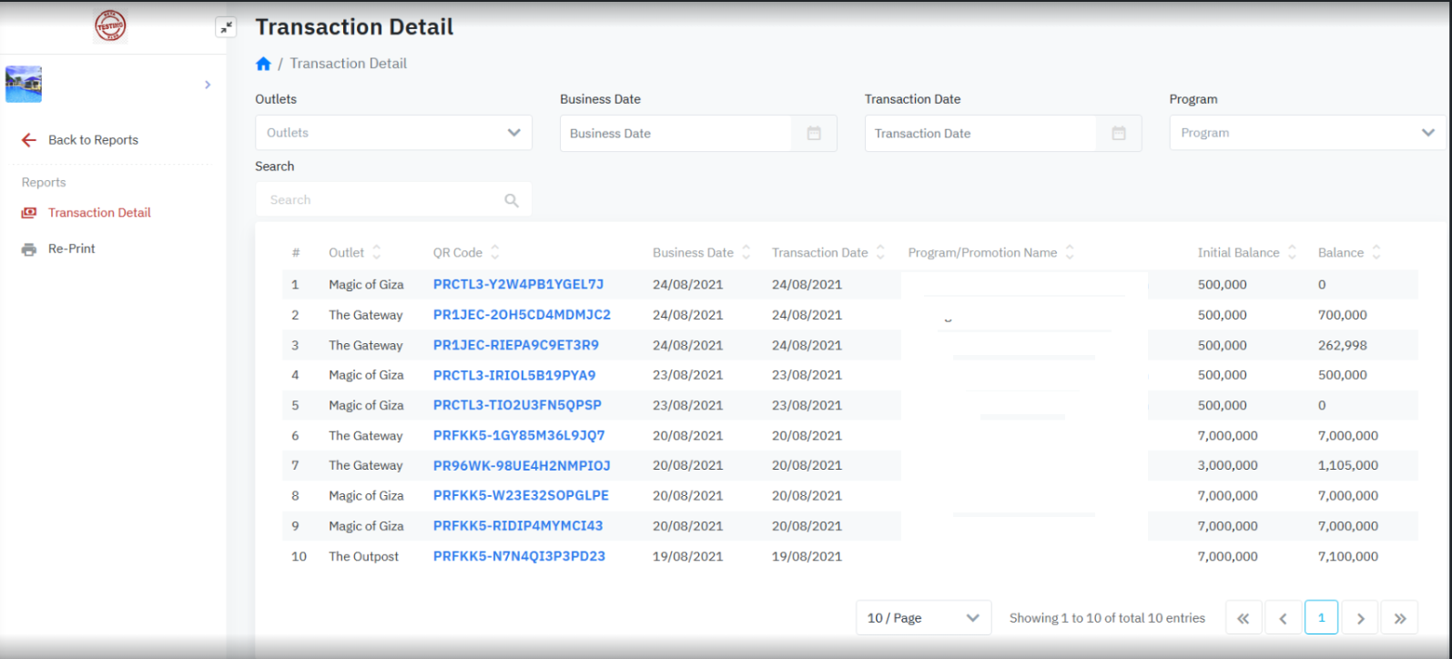 Log in – Food and Beverage - Prepaid Card - Reports |