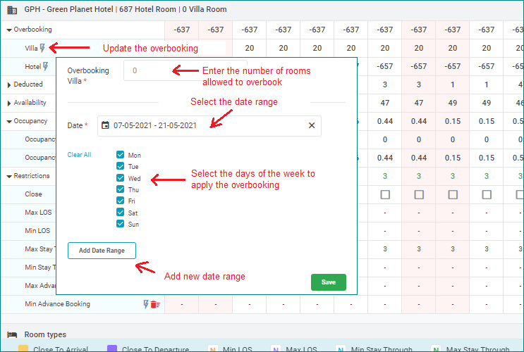 ![]() The restrictions will be displayed by day. Set Restriction by Property