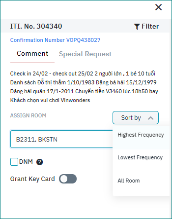 Assign room for party/group reservationFrom the Tab Unassigned, select the itinerary that you want to assign room. Select “Assign All” from the Itinerary Detail screen to assign rooms for all reservations in this itinerary. ![]() The system displays the Room Assignment screen for each room. You can proceed with the assignment like above. ![]() |
