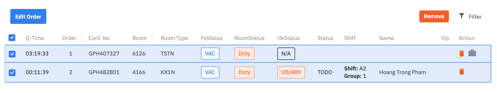 ![]() - Remove: You can also check many rooms and remove them from the queue at the same time. ![]() |