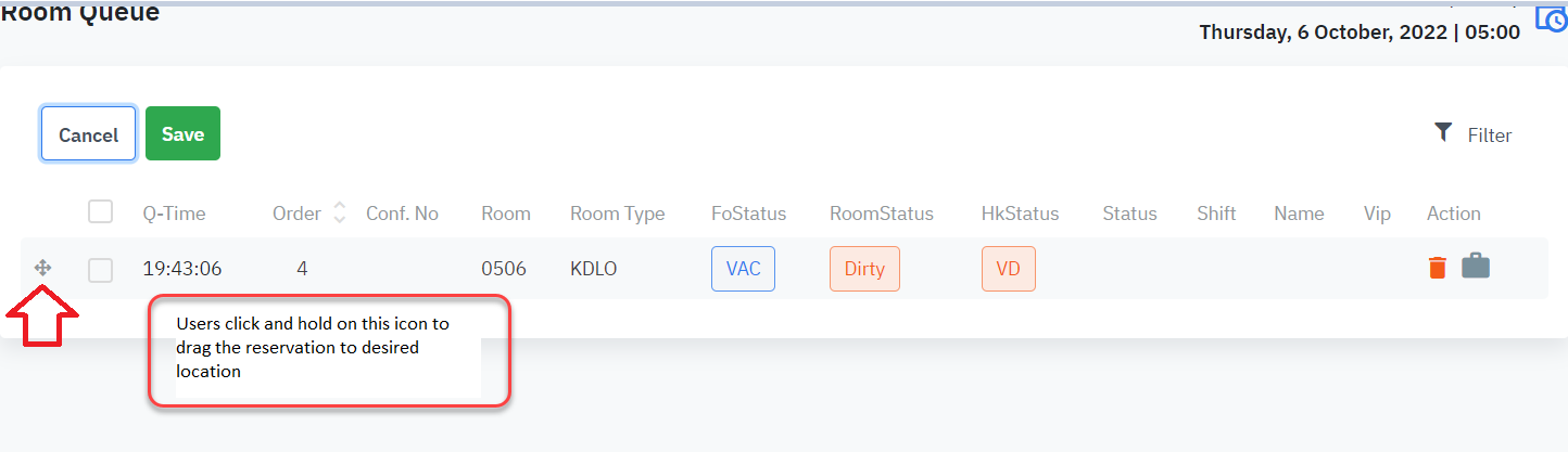 The Room Queue feature allows you to manage the room assignment faster. Adding a room into the queue helps the housekeeping department prioritize cleaning this room before the guest arrives. |