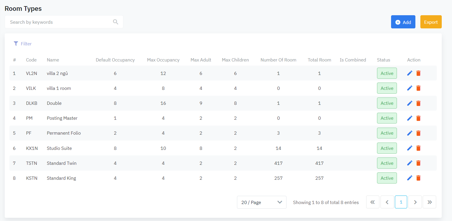 [Media Information] – Upload the illustration photos of the room type[Amenities] – Select the list of amenities available for the room type[Feature] – Select the list of Room Features available for the room type![]() ![]() Language - Language displayed on the hotel's website![]() ![]() Select “Export PDF” to download the list of room types to PDF file. |