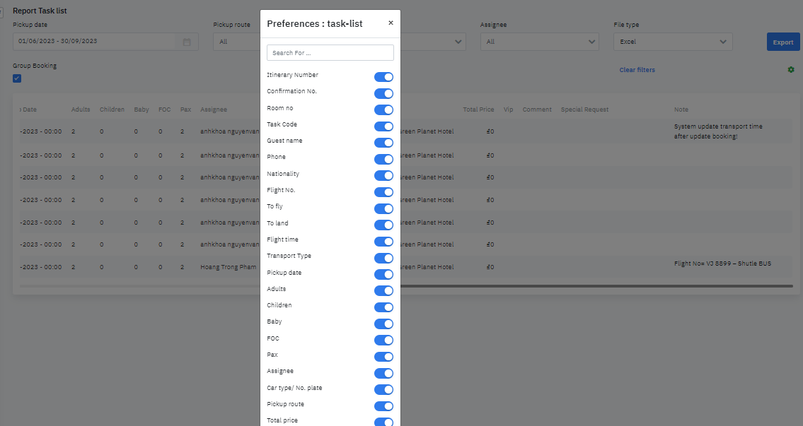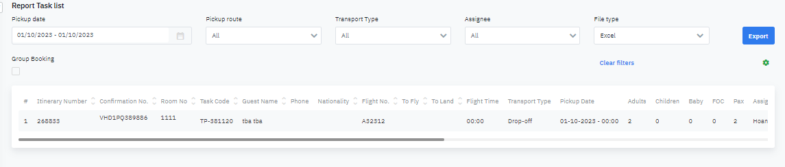 Log in – Transportation - Report - Task List |