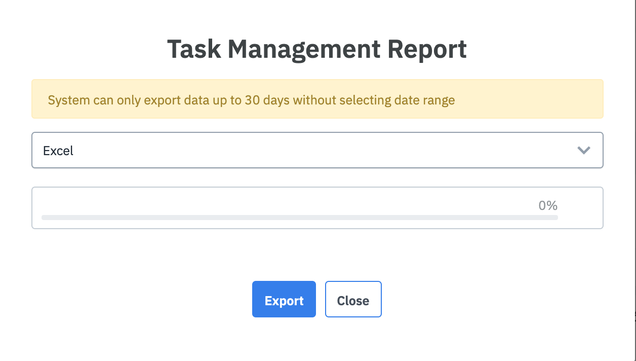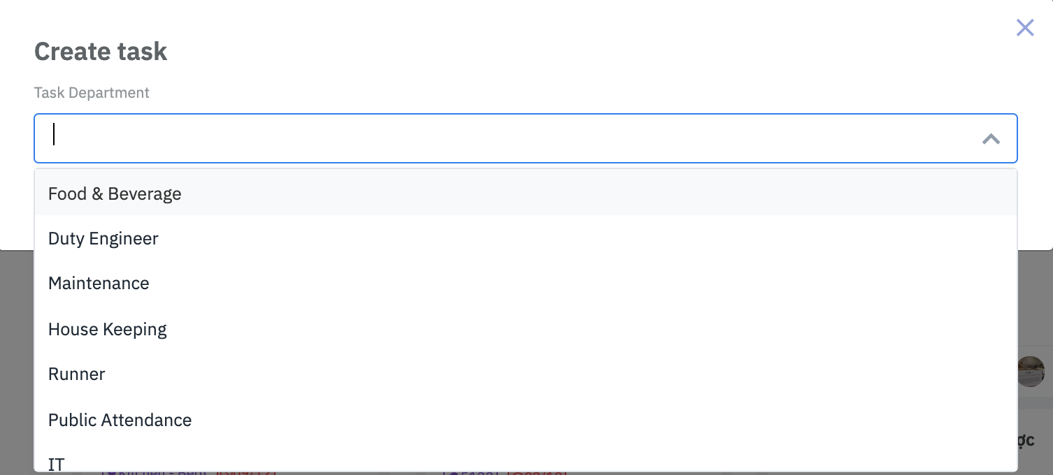Task Export: Export the report of the list of tasks. You can export by Excel & PDF format. ![]() Create a new TaskSelect the department to create a new task. By default, the template of the task is pre-configured for each department. ![]() ![]() Fill in the following fields to create the task. The list of fields can vary according to the department.