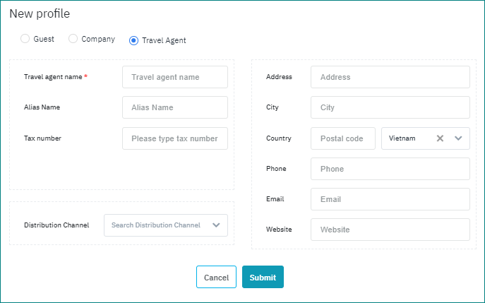Log in – Front Office – Profiles – Select “New Profile” – Select “Travel Agent” |