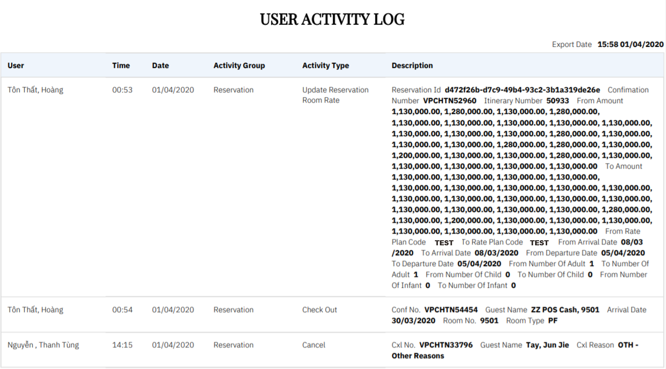 Log in – Front Office – User Activity Log |