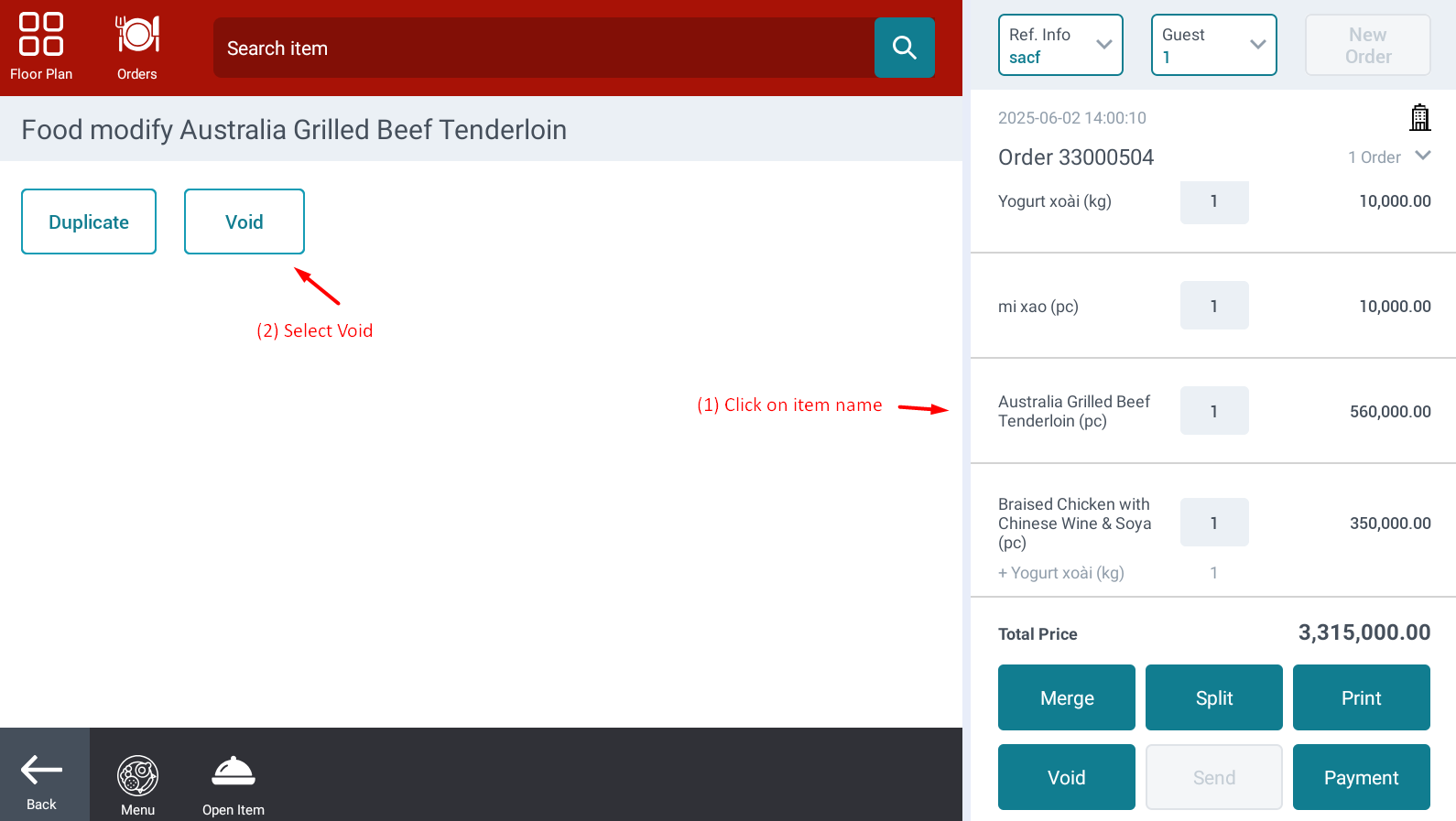 For items that have already been sent to the bar/kitchen for preparation, users cannot edit the item details. In such cases, users (with manager-level permissions) can cancel individual items or the entire order if it has not yet been paid. |