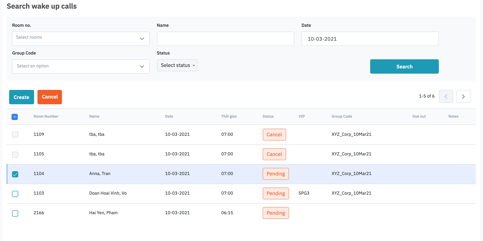 ![]() Select the group code and the room numbers in the group to set up the call. Time: You can select the time slot by the calendar or enter directly in the input field. ![]() Date: Date when the call will be made. No.days: Number of days to make the call, counted from the Date. To: End Date of the call. This field is calculated automatically depending on the No. Days Note: Comment on the call (if any) ![]() Submit: Confirm adding the call. Cancel the wake-up call![]() You can select the calls that you want to cancel. Click the button Cancel to remove the calls from the list. ![]() |