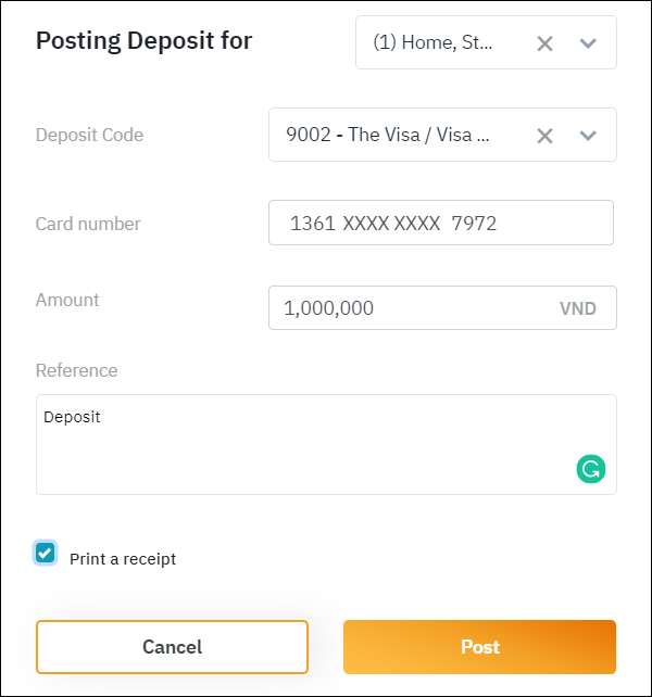 បន្ថែមការកក់ប្រាក់ (Deposit) |