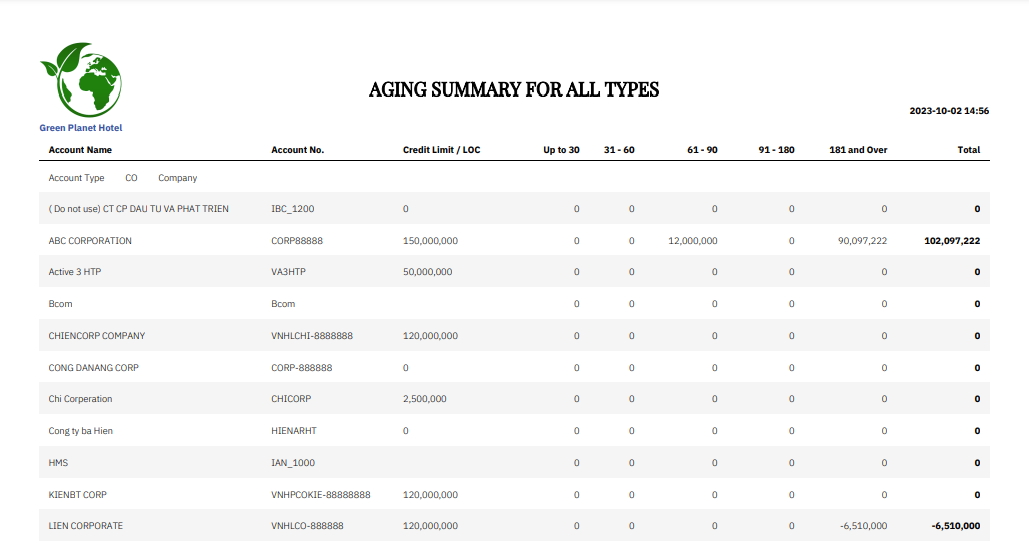 របាយការណ៍គឺផ្អែកលើកាលបរិច្ឆេទជាក់ស្តែងនៃបំណុលដែលកើតឡើង និងកាលបរិច្ឆេទនៃការមើលរបាយការណ៍ដើម្បីគណនាអាយុបំណុល VD: ប្រតិបត្តិការកត់ត្រាបំណុលដែលកើតឡើងនៅកាលបរិច្ឆេទ 01/01