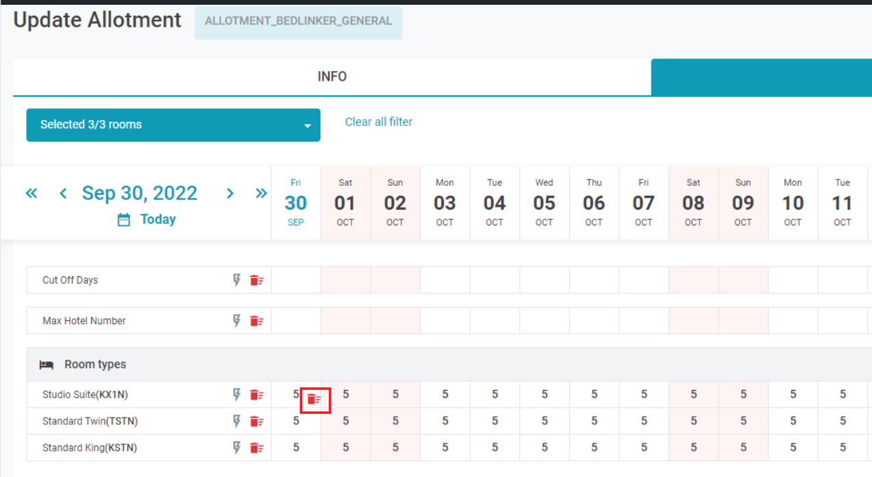 4. [Tab Details Config] - បង្កើតលម្អិតអំពីមូលនិធិបន្ទប់របស់បណ្តាញលក់បន្ទប់4.1. បង្កើត Cut Off Days អ្នកប្រើប្រាស់អាចកក់បន្ទប់បានតែនៅពេលដែល ថ្ងៃកក់បន្ទប់ < ថ្ងៃ check in – Cut Off Day នៃថ្ងៃនោះ ជ្រើសរើសរូបតំណាងបង្កើតរហ័សនៃ Cut Off Day ![]() ![]()