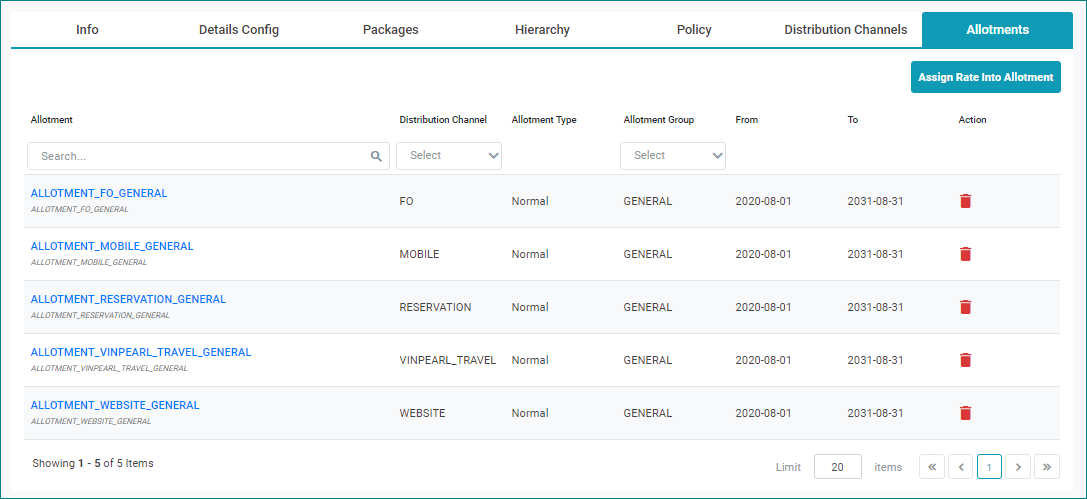 Log in – Rate Service Management – Rate Plan - Allotments |