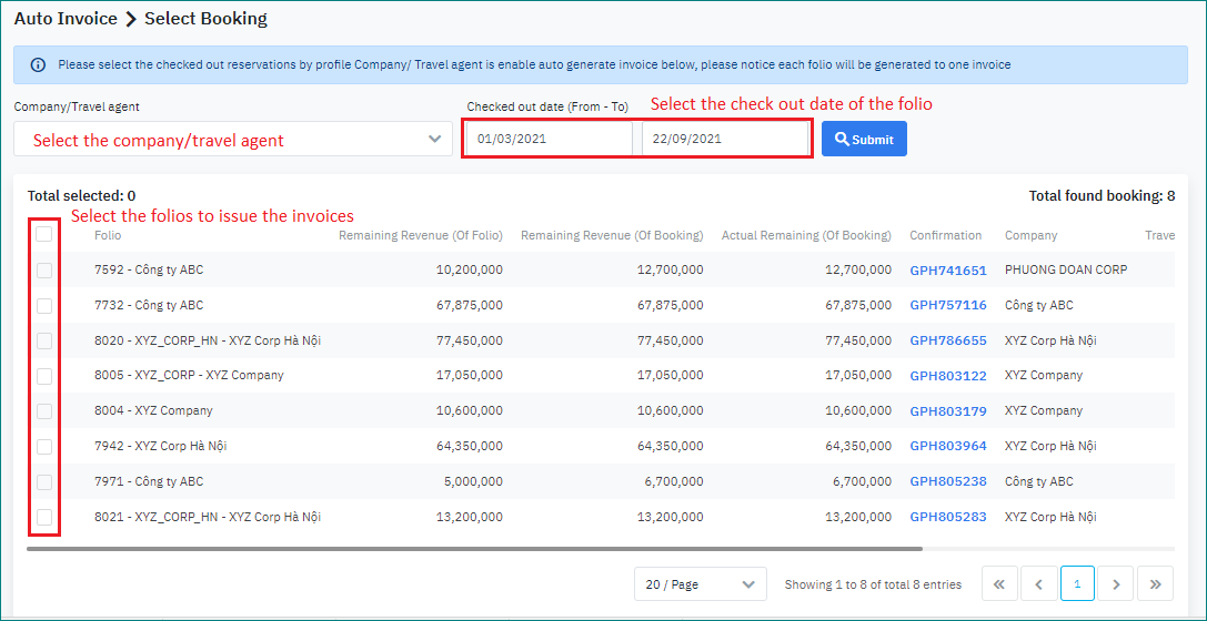 [រាល់ជំហាននៃការអនុវត្ត Auto Invoice]ជំហាន 1: Select Booking