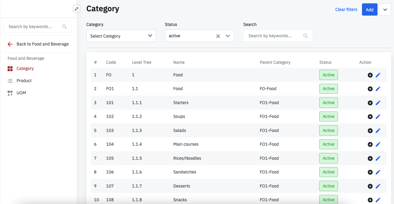 Log in – Admin Setting – Setup – Food and Beverage – Category |