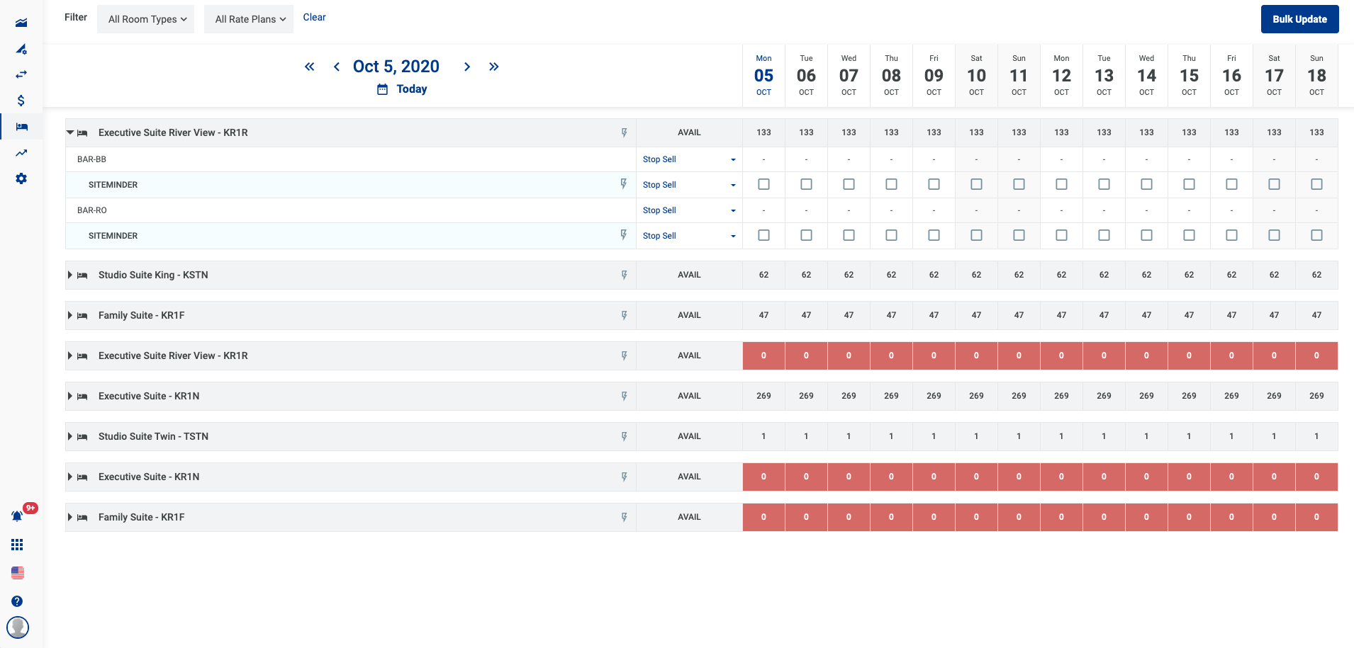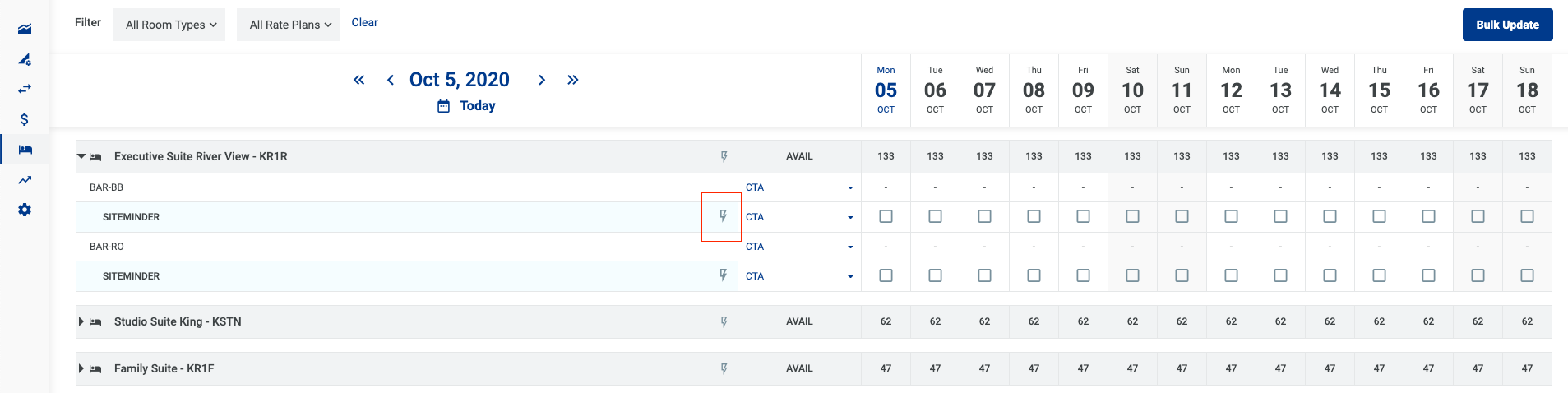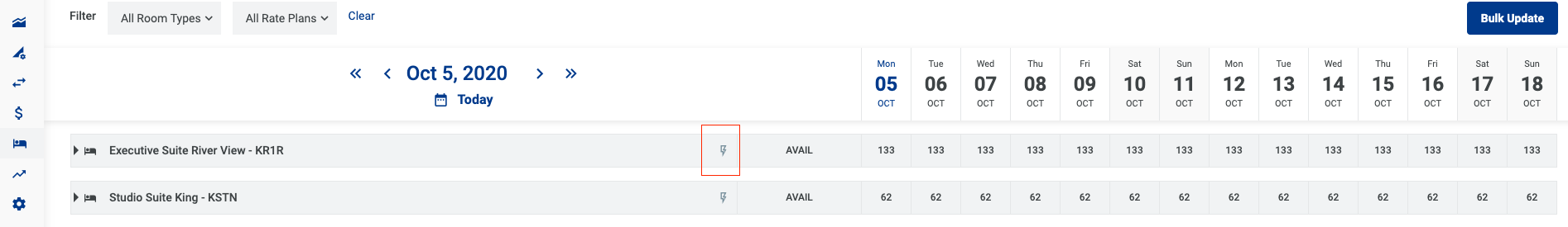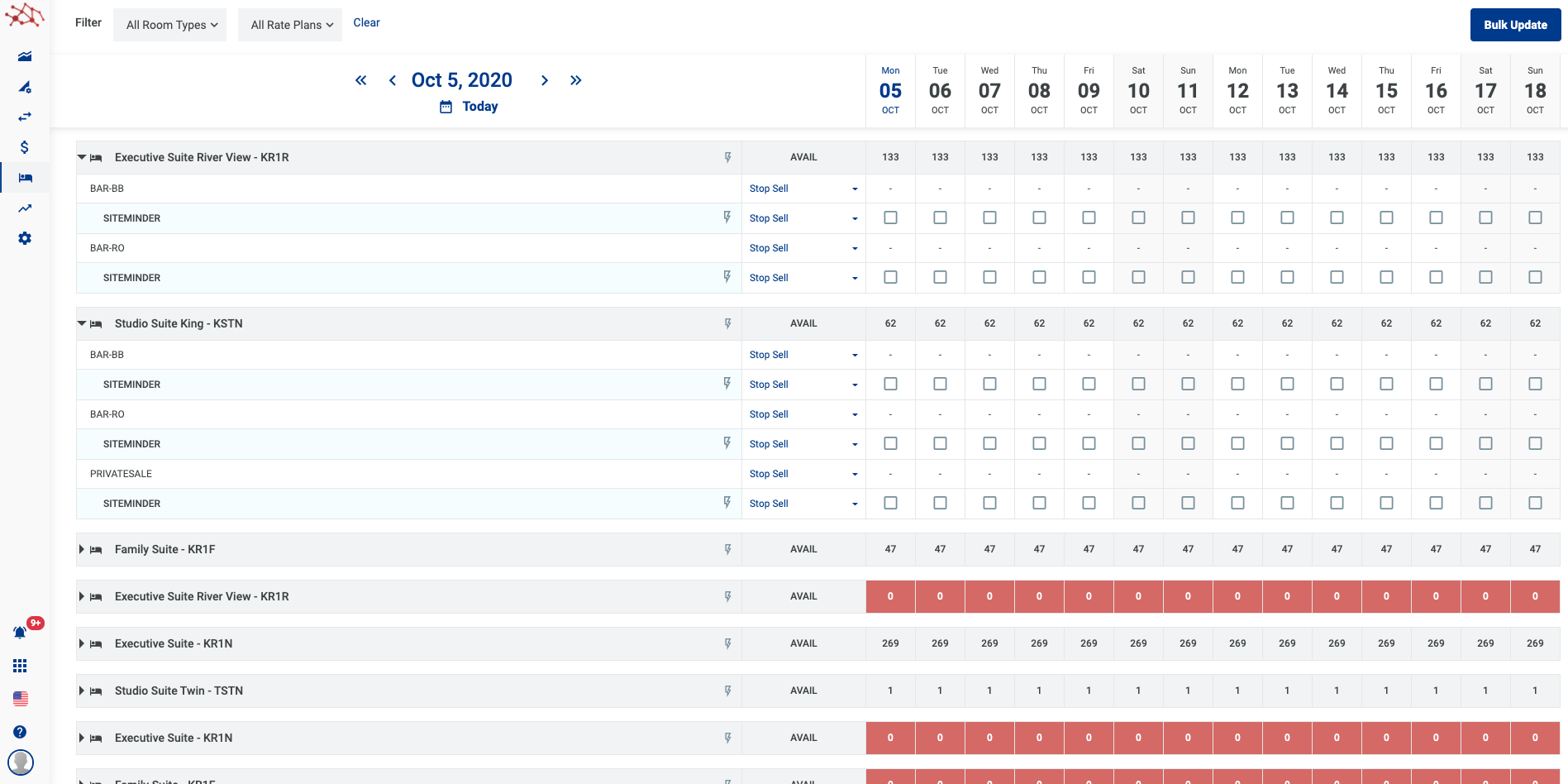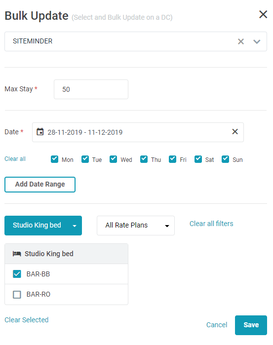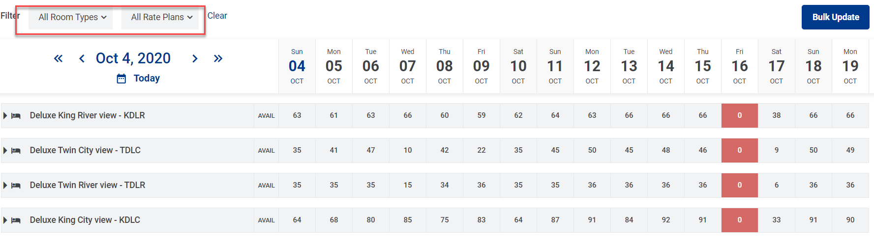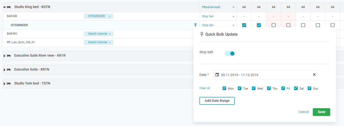 - អាប់ដេតភាគច្រើនសម្រាប់មួយប្រភេទ Room type - Rate plan តាមរយះ button Bulk Update.