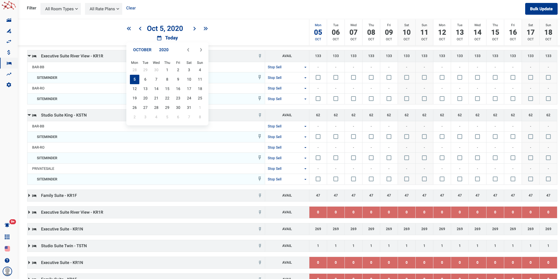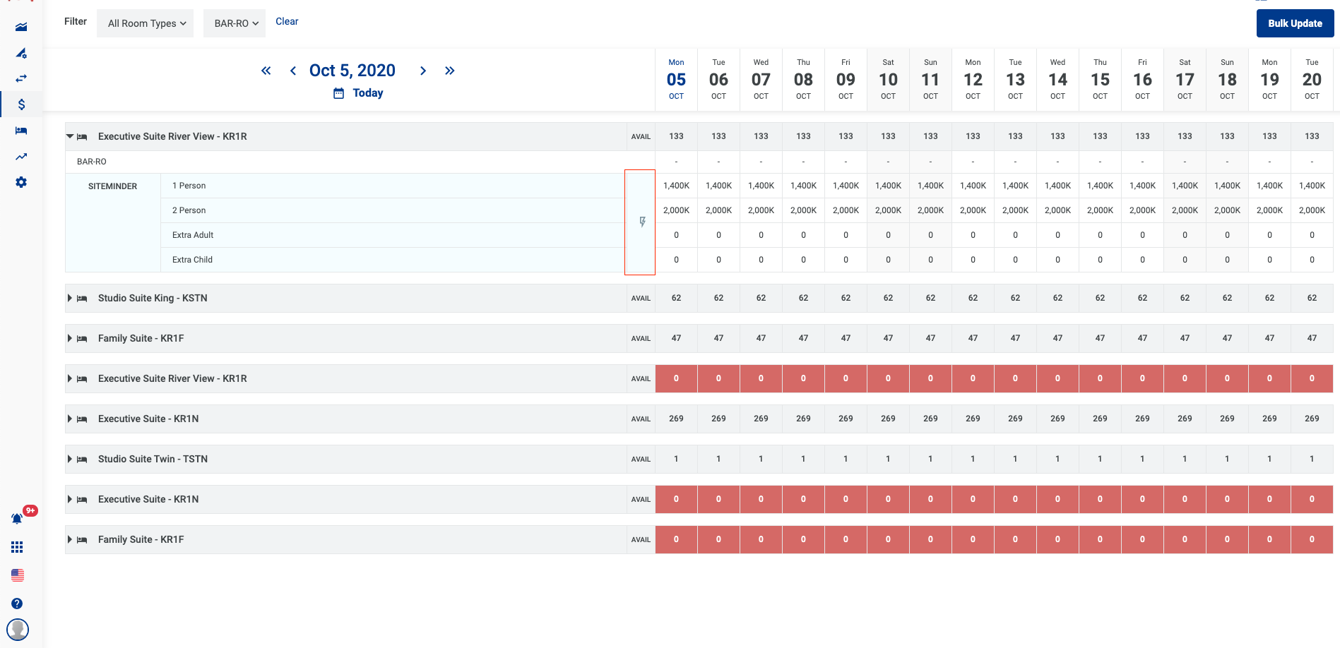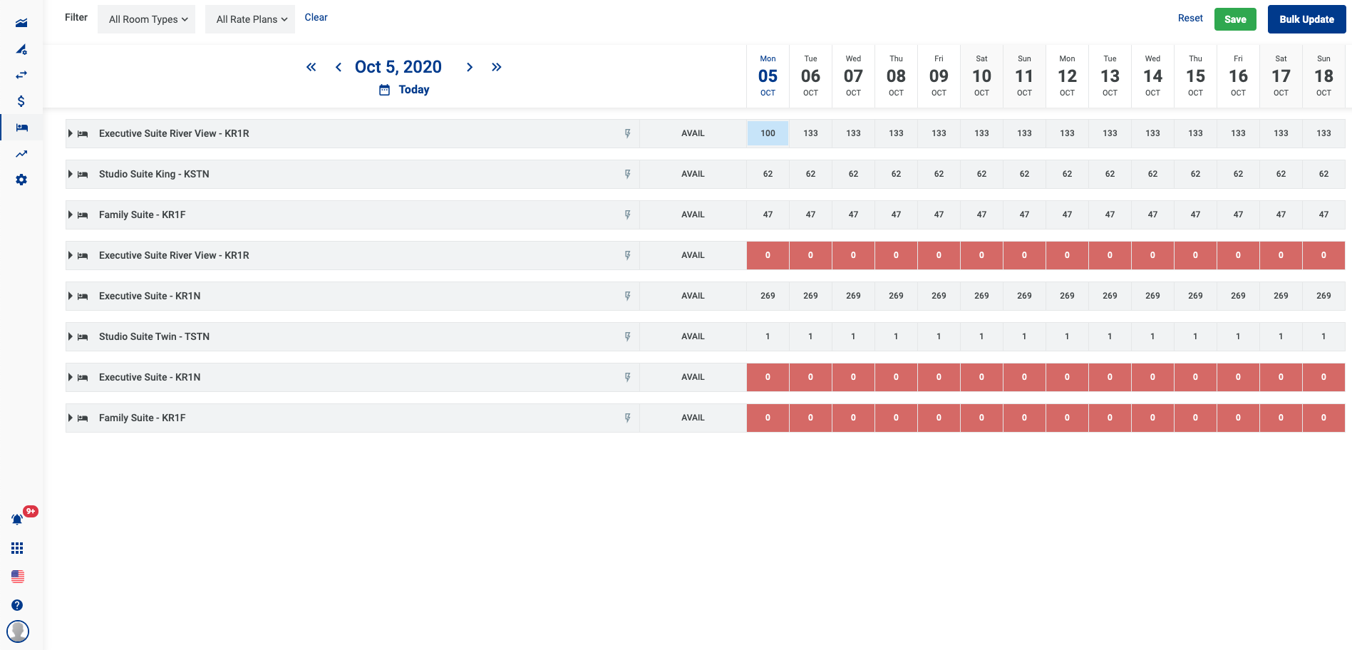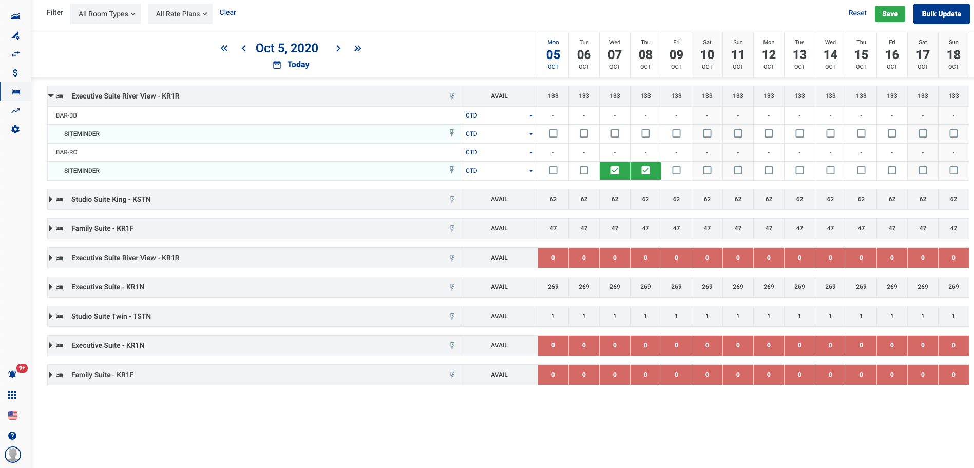 - អាប់ដេតភាគច្រើនសម្រាប់មួយប្រភេទ Room type - Rate plan តាមរយះ button Bulk Update.