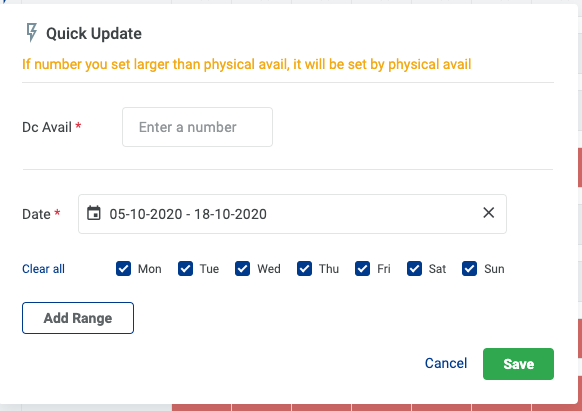3.8.2 ប៊ូតុងបិទបើកផ្អាកការលក់ & កែសម្រួលកាលបរិច្ឆេទ ឬបន្ថែមជួរកាលបរិច្ឆេទ → បន្ទាប់មកចុច Save