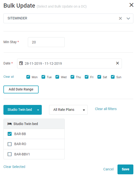 - Set Min Stay សម្រាប់មួយ room type - rate plan ក្នុងរយៈពេលមួយ.