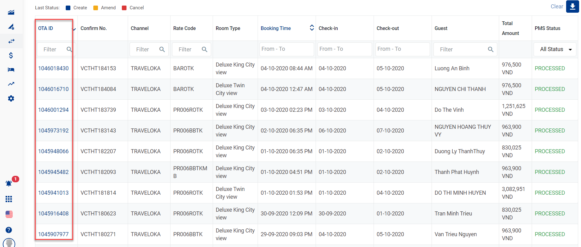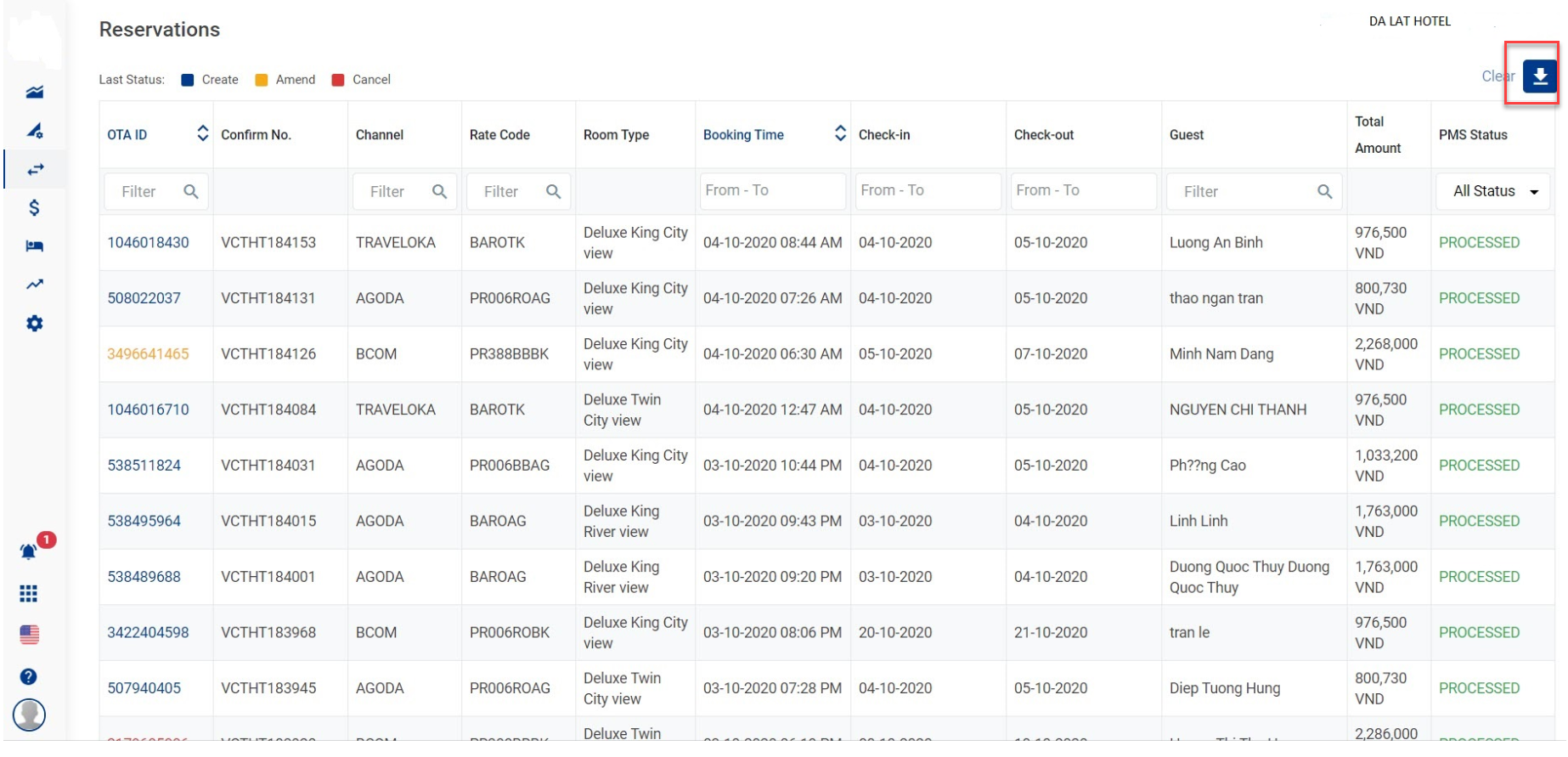 - រៀបចំ reservation តាមវាល Reservation ID ឬ Date Created.