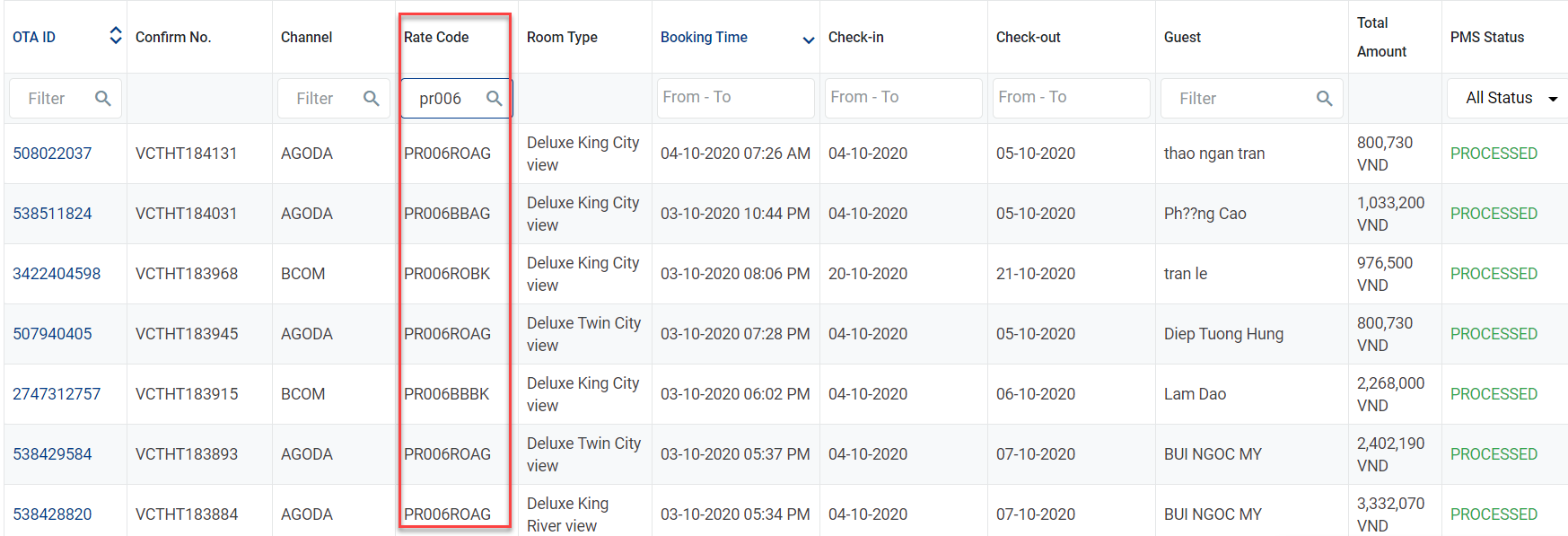 3.4.3 Filter តាម Rate code.