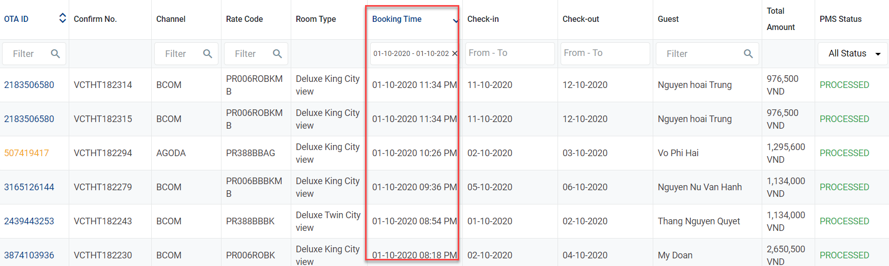 3.4.4 Filter តាម Booking Time.