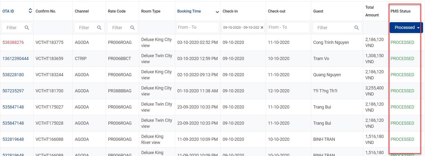 3.4.6 Filter តាម PMS Status