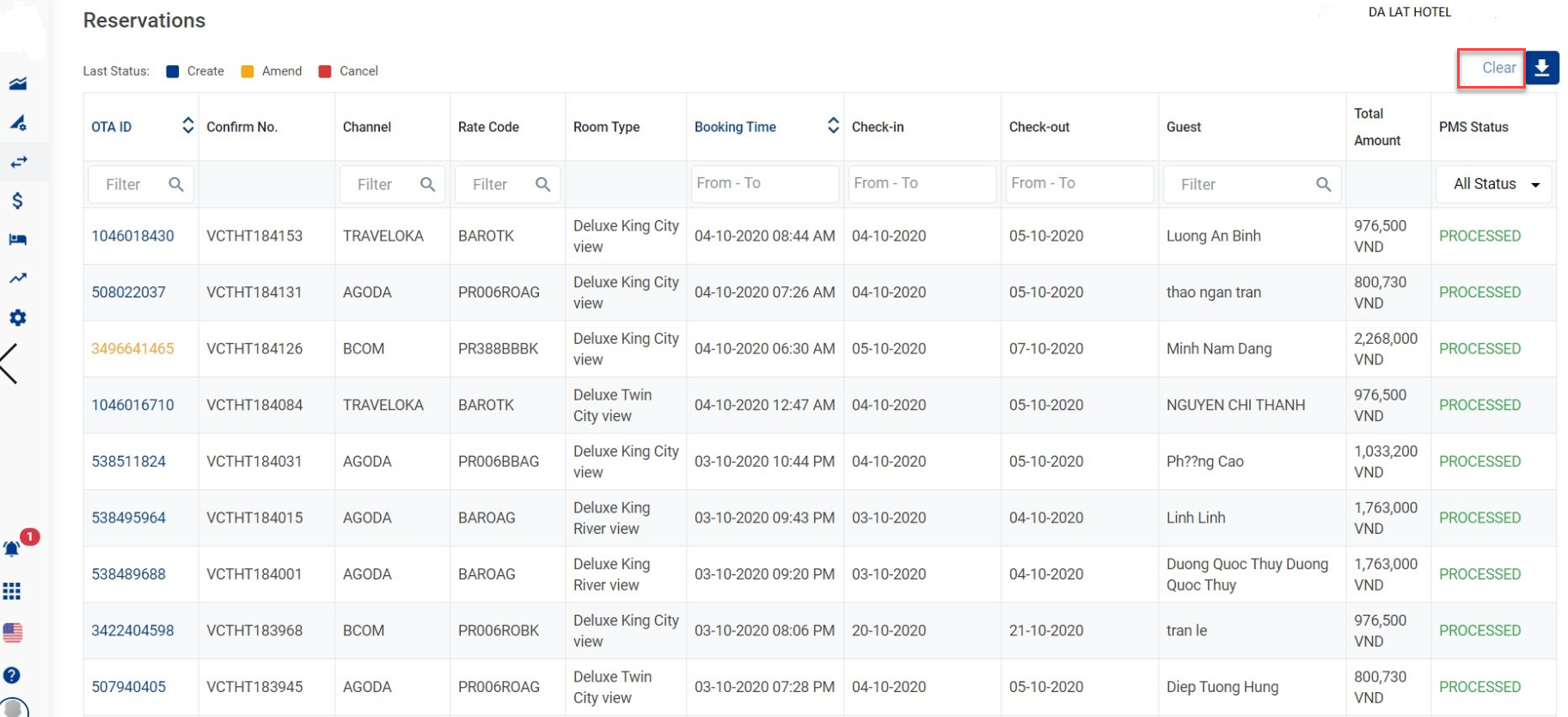 -User អាចលុបទាំងអស់ filter នៅក្នុងតារាង Reservations ដោយចុច Clear all filter