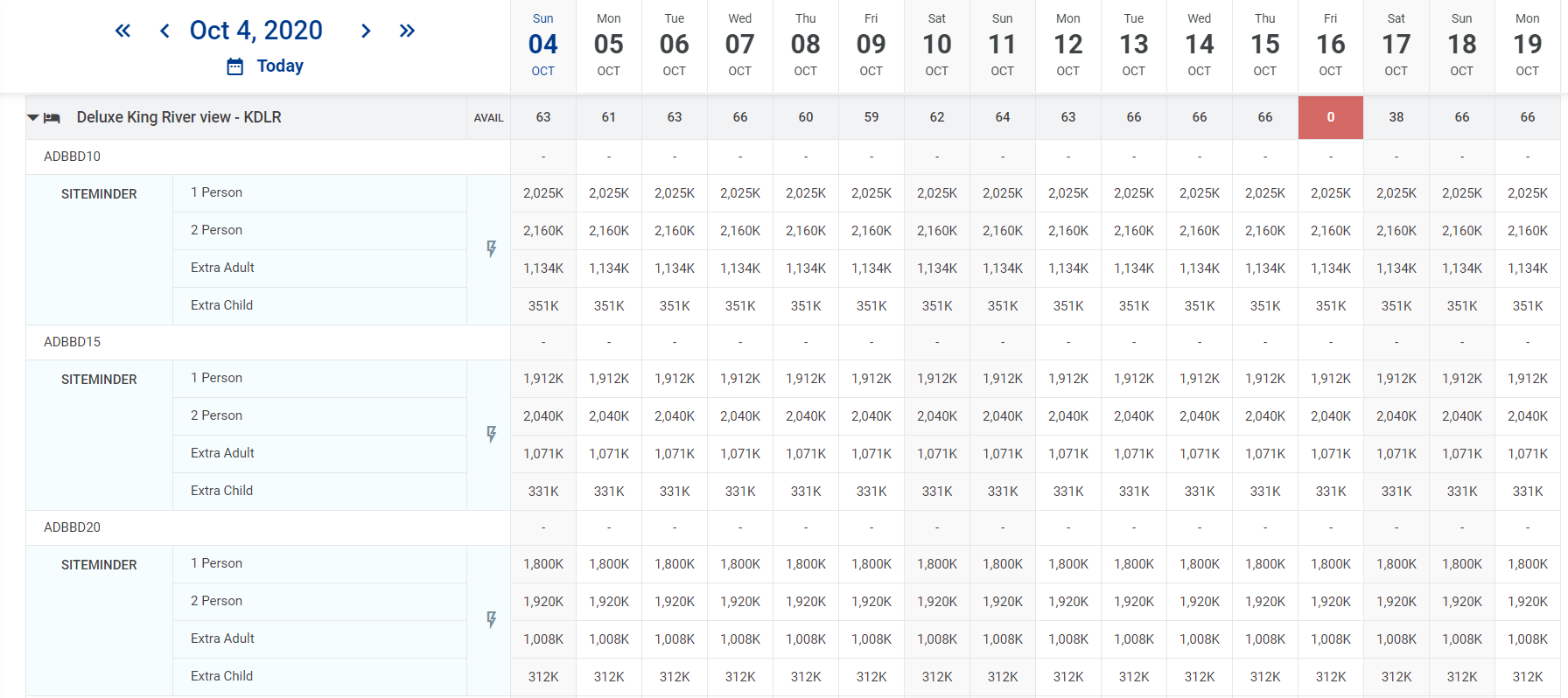 - មើលការចែកចាយតម្លៃតាមកាលបរិច្ឆេទដែលចង់បានដែលត្រូវគ្នានឹងនីមួយៗ Room Types.