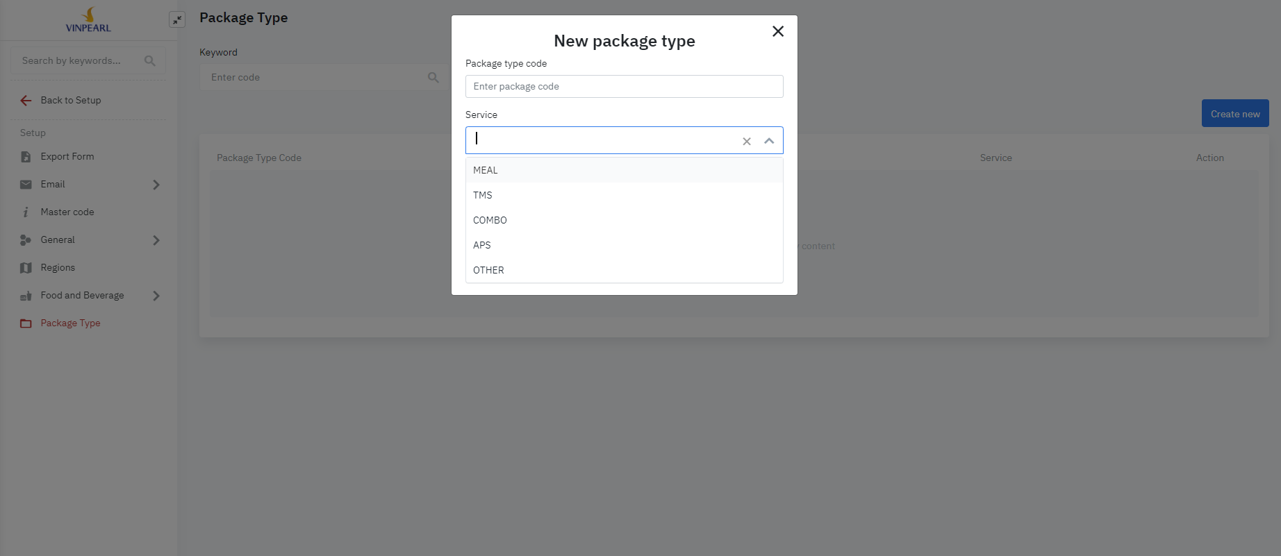 បញ្ចូលព័ត៌មានដើម្បីបង្កើតថ្មី Package Type: