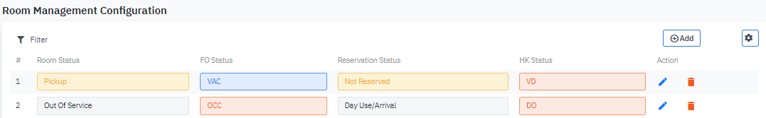 កំណត់រចនាសម្ព័ន្ធ និងគ្រប់គ្រងស្ថានភាពបន្ទប់ និងស្ថានភាពថែទាំបន្ទប់. |