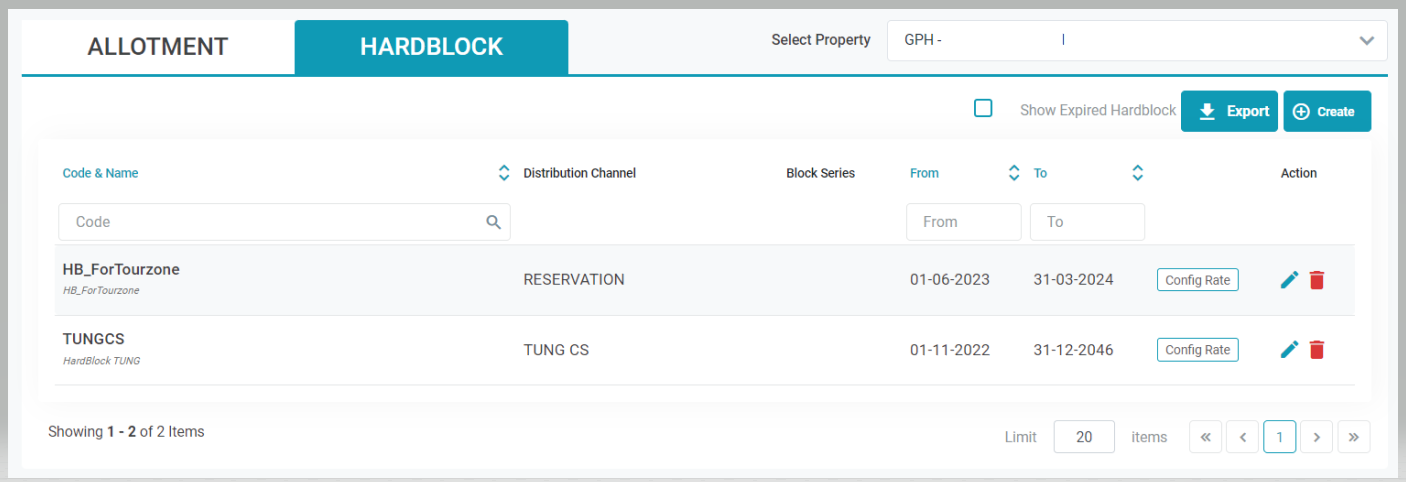 Log in – Rate Service Management – Allotment – Tab Hard Block |