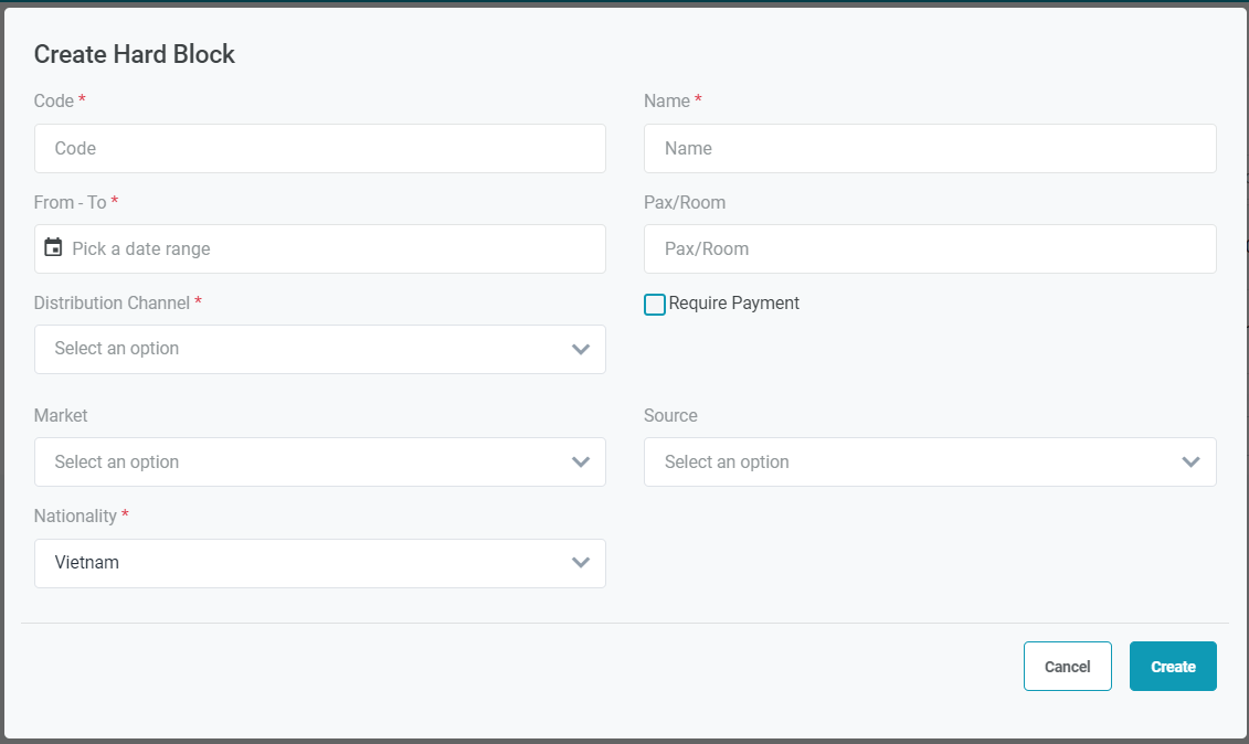 Hard Block Allotment (HB) - មូលនិធិបន្ទប់ថេរនឹងត្រូវបានបង្កើតឡើងសម្រាប់បណ្តាញលក់បន្ទប់ នៅពេលបង្កើតលម្អិតបន្ទប់សម្រាប់ HB គឺលេខបន្ទប់នេះបានប្រើប្រាស់សម្រាប់មូលនិធិ HB នេះ ហើយក៏ត្រូវបានកាត់ដោយផ្ទាល់ក្នុងមូលនិធិបន្ទប់ |