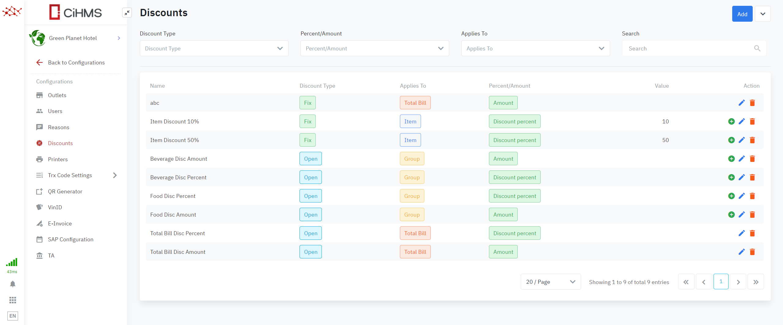 Log in – Food and Beverage Configurations - Discounts |