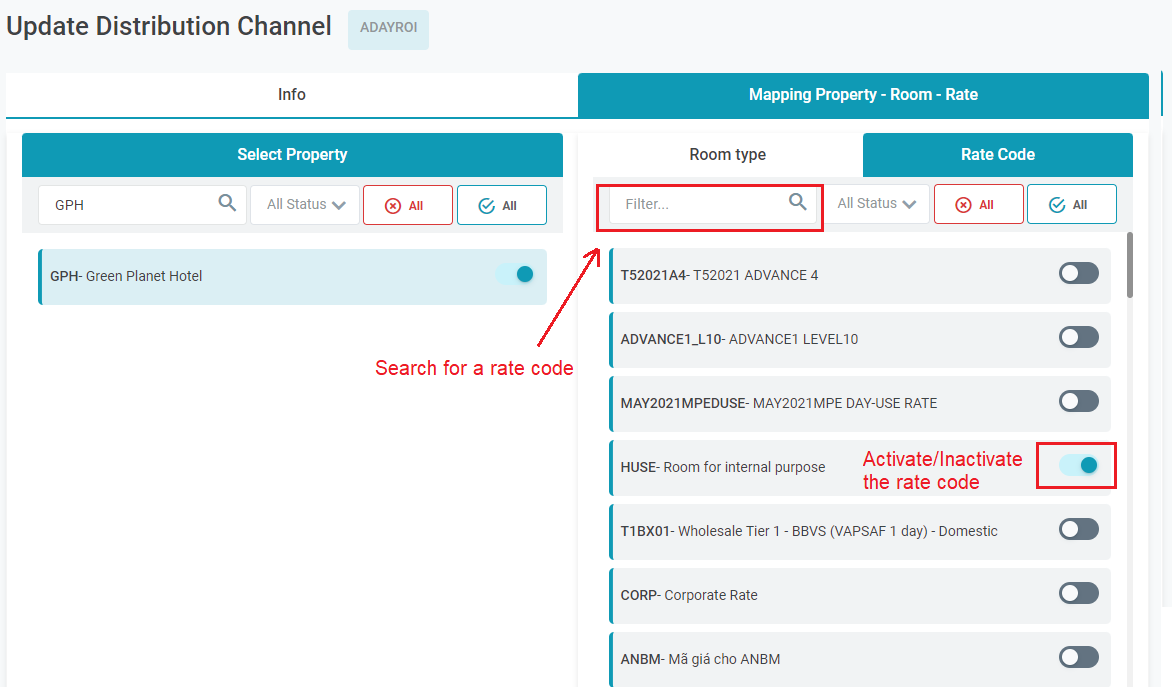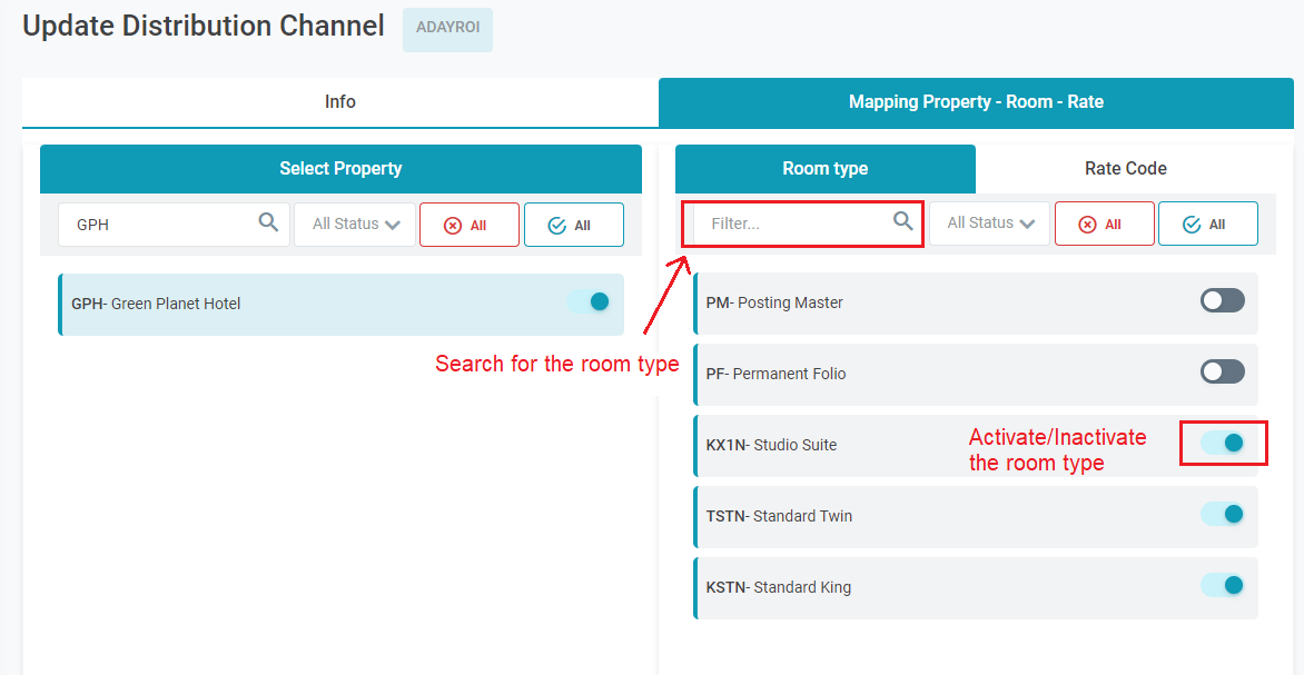 [Filter] – លក្ខខណ្ឌស្វែងរក![]() ស្វែងរករហ័សសម្រាប់លេខកូដតម្លៃបន្ទប់ដែលបានប្រកាសនៅក្នុងប្រព័ន្ធដោយ៖