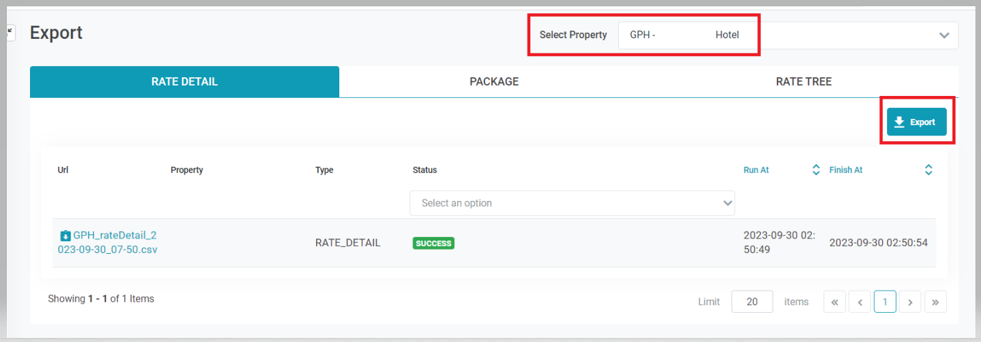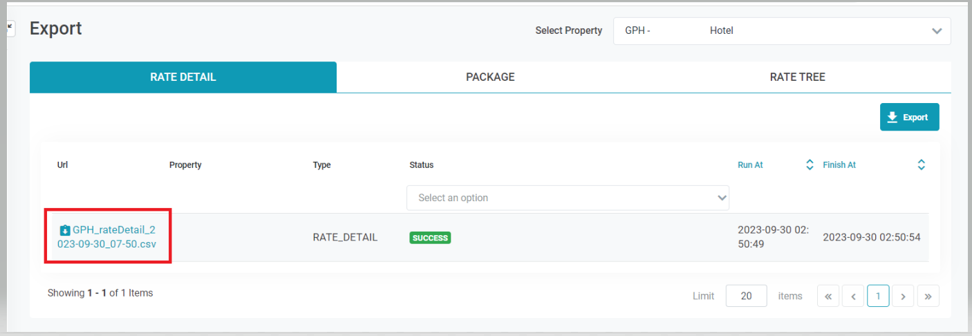 ជ្រើសរើស Property ស្នាក់នៅដែលនាំចេញ Rate Plan នៅ Select Property, បន្ទាប់មកចុចចូល Export ដើម្បីប្រព័ន្ធបន្តនាំចេញព័ត៌មាន ![]() បន្ទាប់ពីការស្រង់ចេញដោយជោគជ័យ អ្នកប្រើប្រាស់នឹងចុចលើតំណភ្ជាប់ក្នុងជួរ Url ដើម្បីទាញយក file បានទម្រង់តាម excel. ![]() 1. [Export Rate Details] - នាំចេញព័ត៌មានលម្អិតអំពីតម្លៃនៅសណ្ឋាគារ/រមណីយដ្ឋានពីប្រព័ន្ធ RRM:អនុវត្តប្រតិបត្តិការខាងលើ Tab Rate Detail. របាយការណ៍នេះគឺស្ទើរតែដូចគ្នាជាមួយ Configuration - Rate Code - Detail (cf_ratecodedetail) trên Opera 2. [Export Package Details] - នាំចេញព័ត៌មានលម្អិតអំពីកញ្ចប់សេវាកម្មនៅសណ្ឋាគារ/រមណីយដ្ឋានពីប្រព័ន្ធ RRMអនុវត្តប្រតិបត្តិការខាងលើ Tab Package របាយការណ៍នេះគឺស្ទើរតែដូចគ្នាជាមួយ Configuration - Package Codes (cf_packagecodes) លើ Opera 3. [Export Rate Tree] -នាំចេញព័ត៌មានលំអិតអំពីគម្រោងការទទួលមរតកកូដតម្លៃនៅ Resort/Hotel ពីប្រព័ន្ធ RRMអនុវត្តប្រតិបត្តិការខាងលើ Rate Tree |