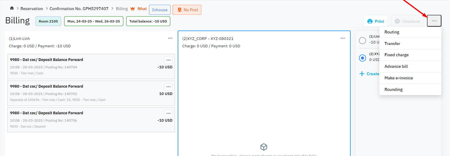 អេក្រង់មុខងារគ្រប់គ្រងរាល់ប្រតិបត្តិការចំណាយរបស់ភ្ញៀវ ដោយបែងចែកជាប្រអប់សេវាកម្ម។ អ្នកប្រើប្រាស់អាចបន្ថែមប្រអប់សេវាកម្មថ្មី អាស្រ័យលើតម្រូវការ Print Bill របស់ភ្ញៀវ |